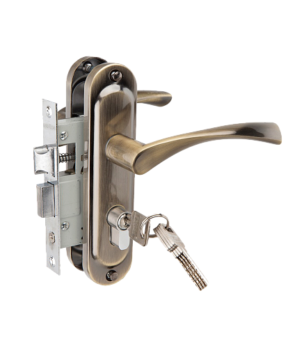 Ручка дверная TRODOS (Vrata) на планке в комплекте с замком 50/76-ЦМ70 (ключ-ключ) AB